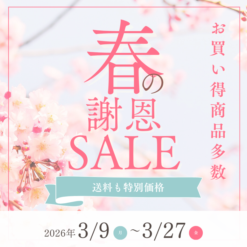 ただいまオンラインショップにて春の謝恩セール開催中です。大変お得なセールになっておりますので、この機会をお見逃しなく! 開催期間:2026年3月27日まで