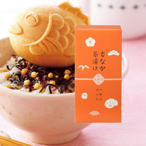 ふっくら可愛い鯛のもなかで、美味しいお茶漬けを包みました。皆さんにお召し上がりいただきタイ、新感覚のブライダルギフトです。